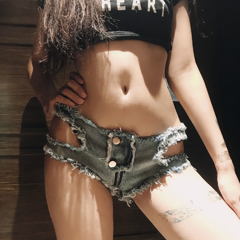Sexy Low Waist Big Hole Design Denim Shorts Night Club Hot Short Pants 4 Sizes