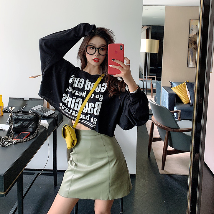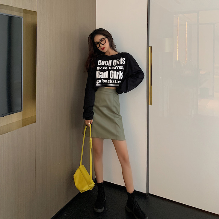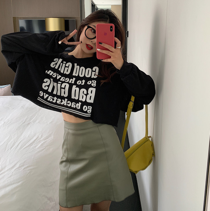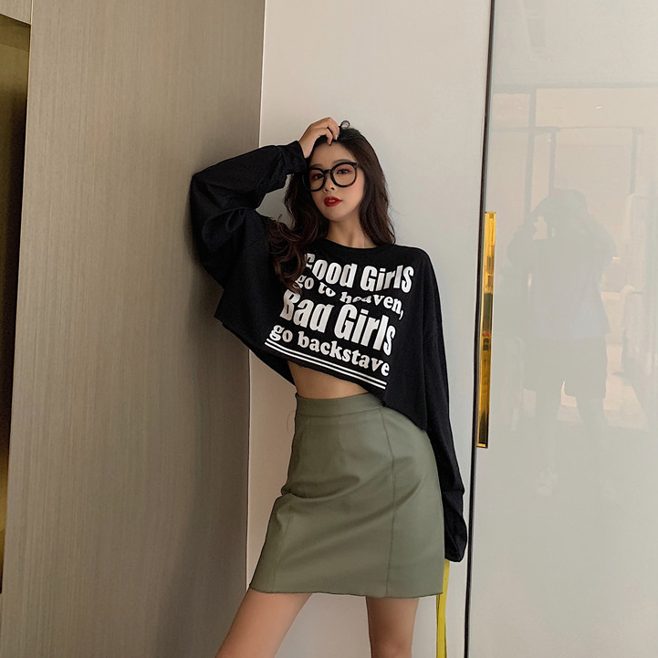 Bad Girl Printed Cropped Top Women's Long Sleeve Black Cropped T-shirts