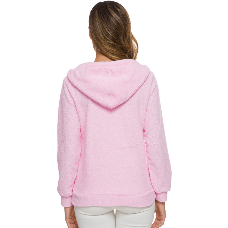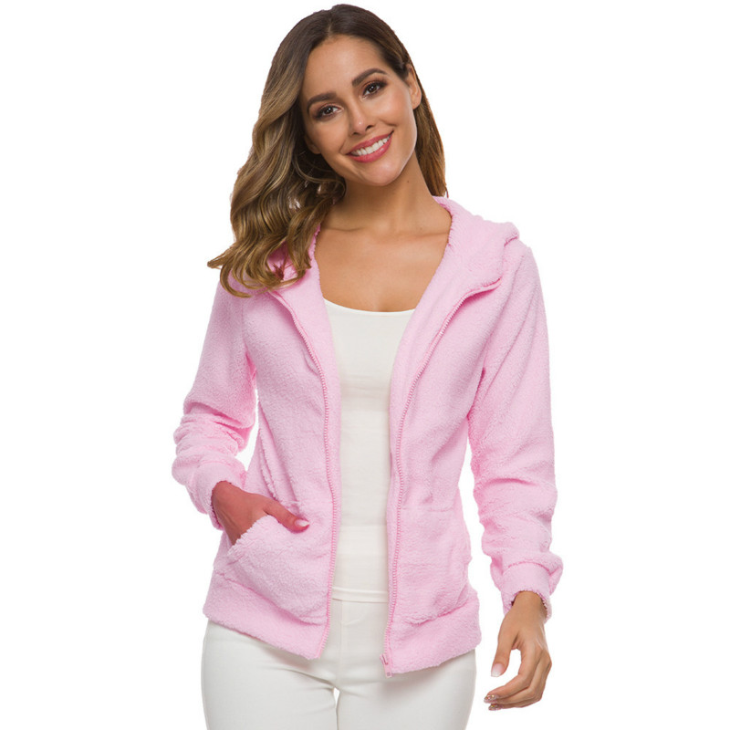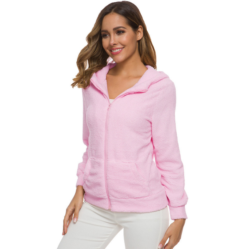 Women's Zipper Hooded Warm Jacket Casual Plush Zipper Coats (with plus sizes) [Pink]