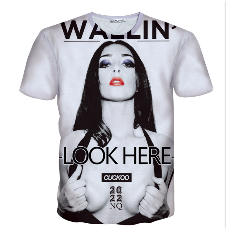 Look Here T-shirts Men's Digital Printed Slim Short Sleeve T-shirts 5 Sizes