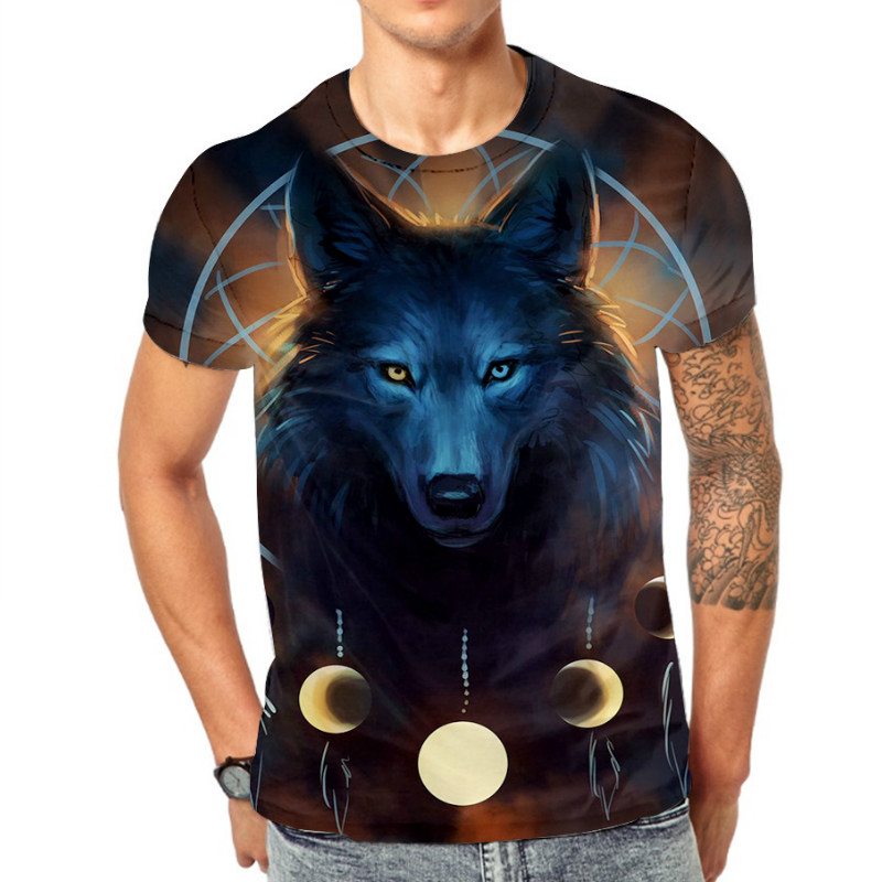 3D Wolf Printed T-shirts Men's Slim Short Sleeve T-shirts 5 Sizes