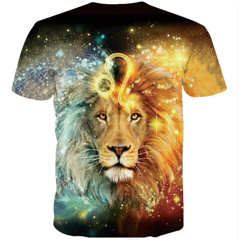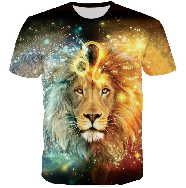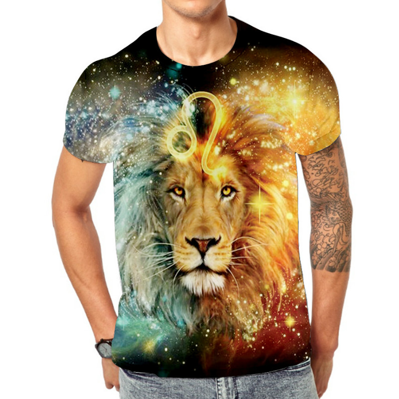 3D Galaxy Lion Printed T-shirts Men's Slim Short Sleeve T-shirts 5 Sizes