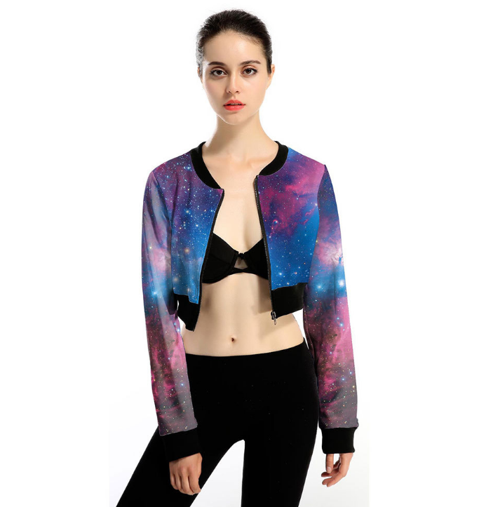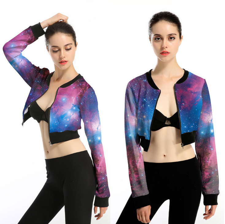 Red Galaxy Cropped Top Jacket Slim Zipper Jacket Small Crop Casual Jackets (03#)