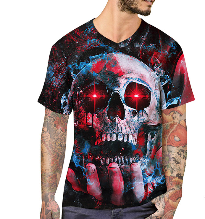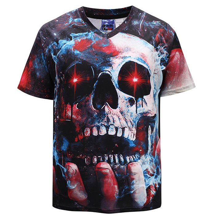 Skull In Hand Digital Printed T-shirt Short Sleeve Slim T-shirts 5 Sizes