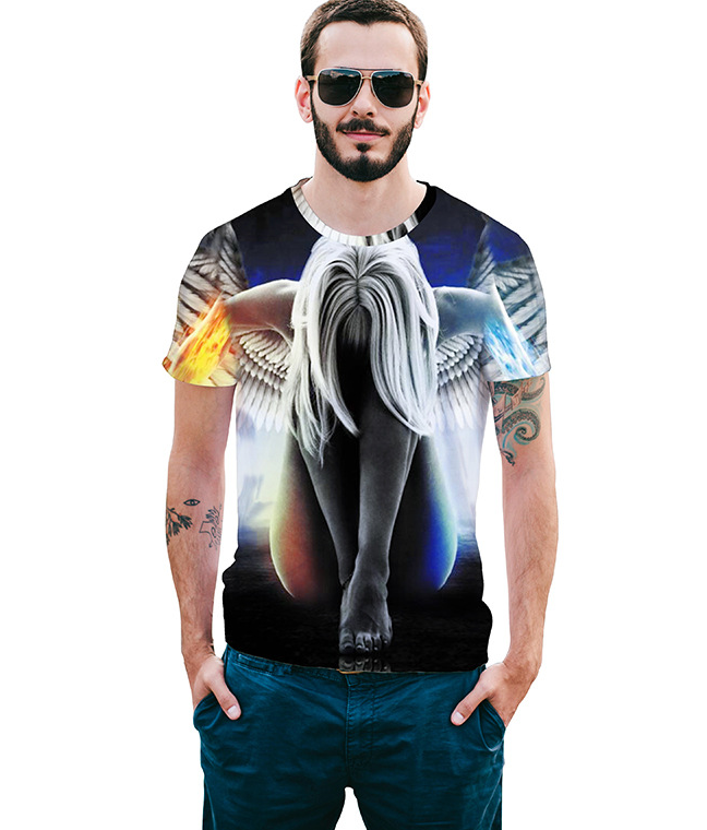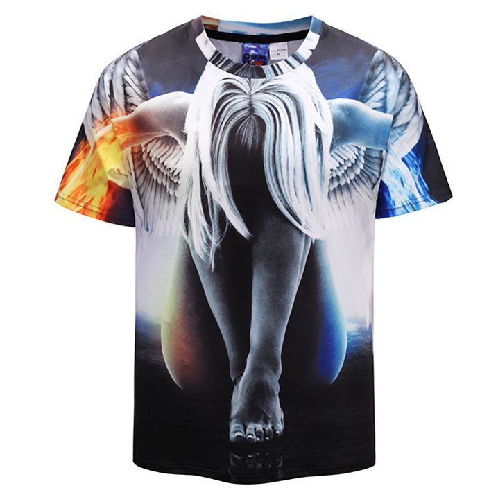 Sexy Angel Digital Printing T-shirts Men's Slim Short Sleeve T-shirts 5 Sizes