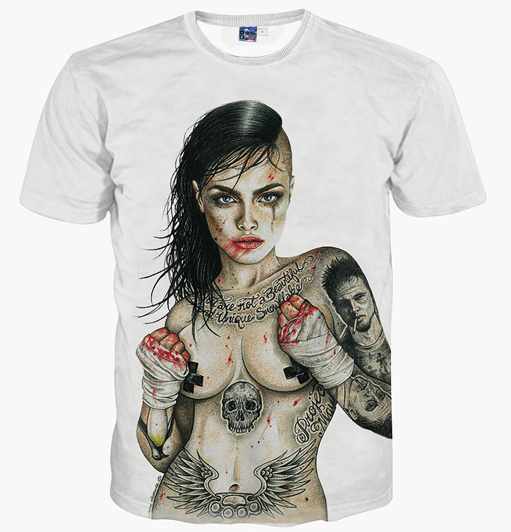 Tattoo Girl Digital Printed T-shirts Slim Short Sleeve T-shirts 5 Sizes