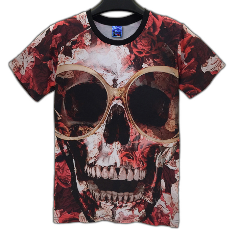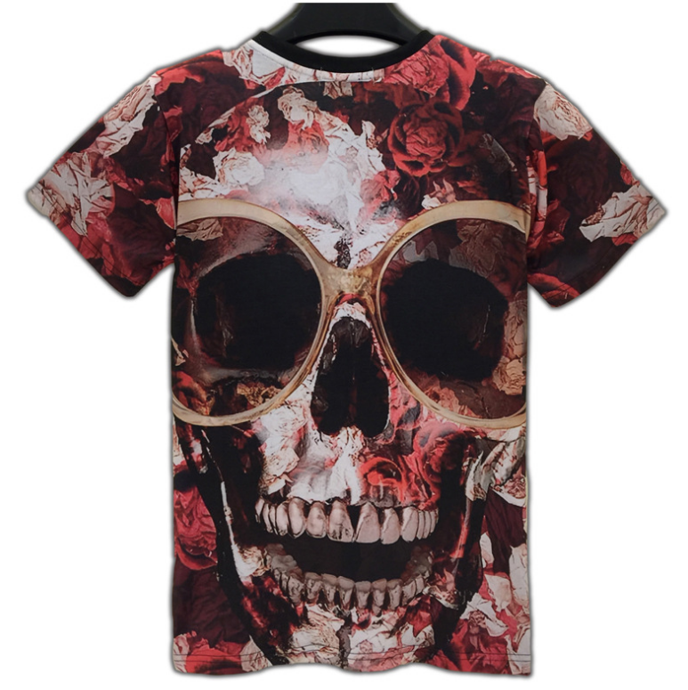 Rose Skull Digital Printed T-shirts Slim Short Sleeve T-shirts 4 Sizes