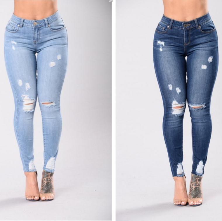 Women's Elastic Cotton Holes Design Boy Friend Sexy Pencil Jeans 5 Sizes 2 Colors