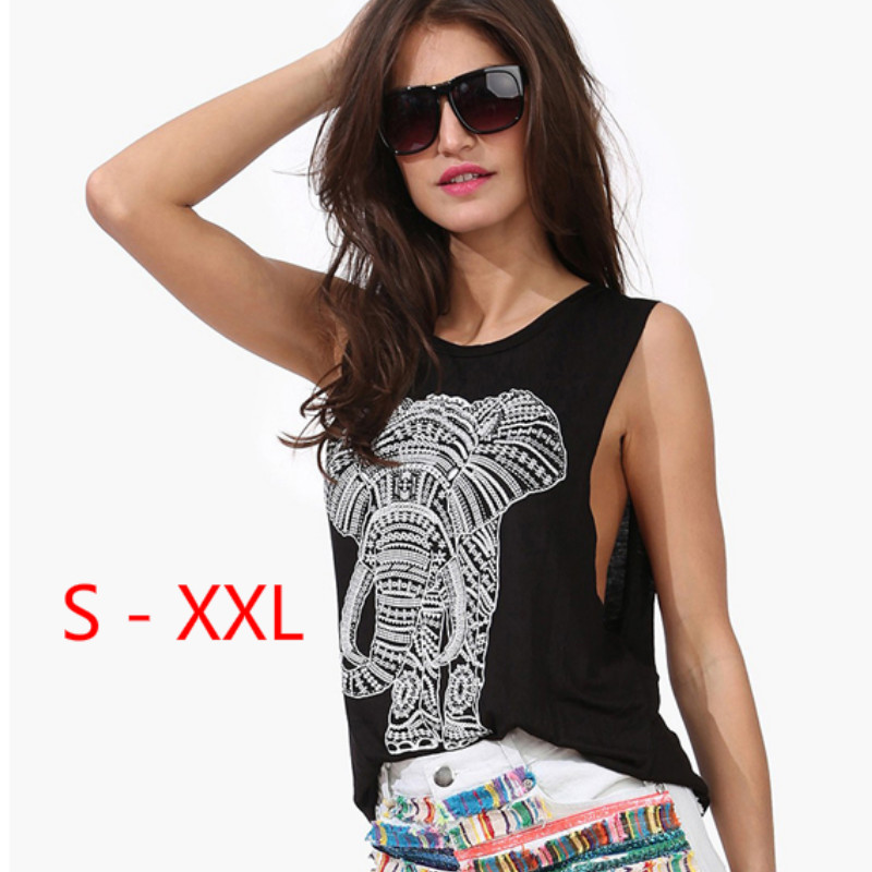 "FREE SHIPPING" Elephant Print Loose Round Collar Vest Sexy Sleeveless Vest T-shirt Vest 5 Sizes