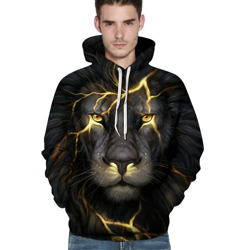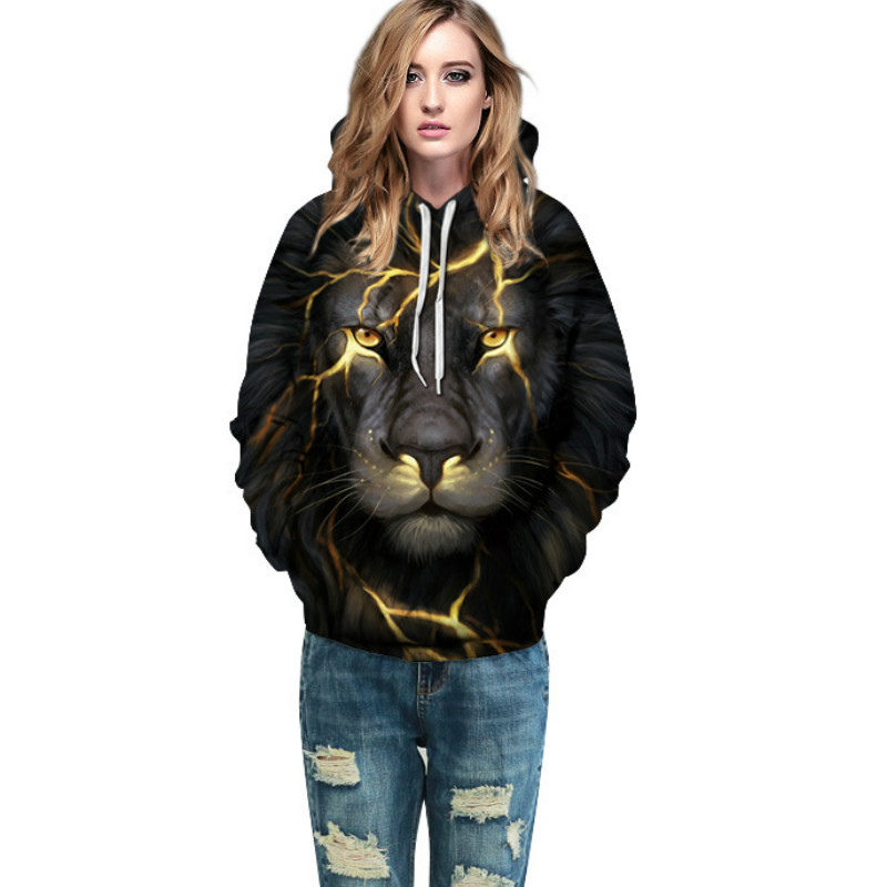 3D Lion Hoodies Digital Printed Long Sleeve Casual Hoodie Sweatshirts 6 Sizes
