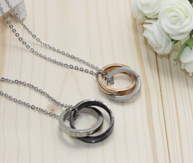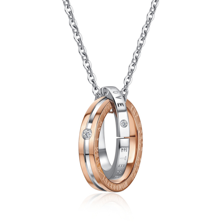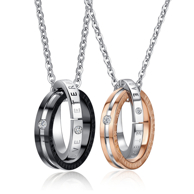 New Fashion Double Circle Titanium Steel Lovers Necklace 2 Colors