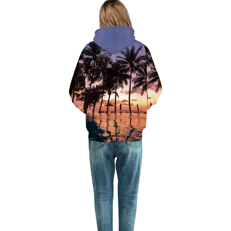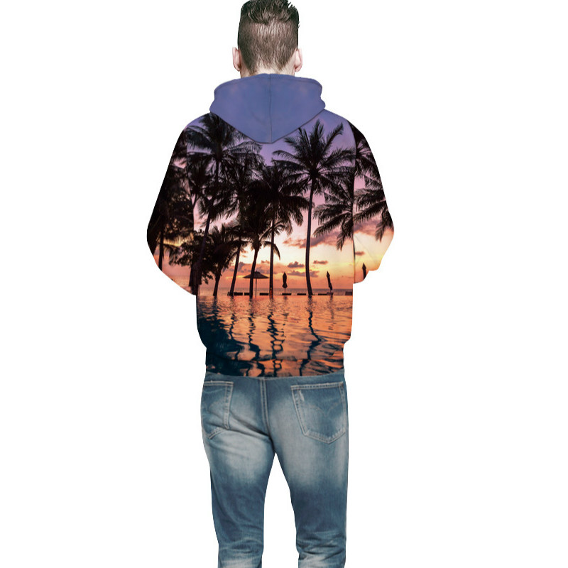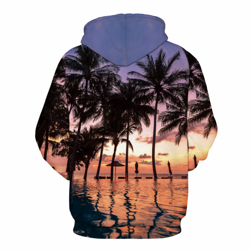 Peaceful Beach Sunset Printed Hoodies Casual Long Sleeve Printed Hoodies 6 Sizes