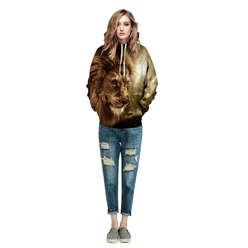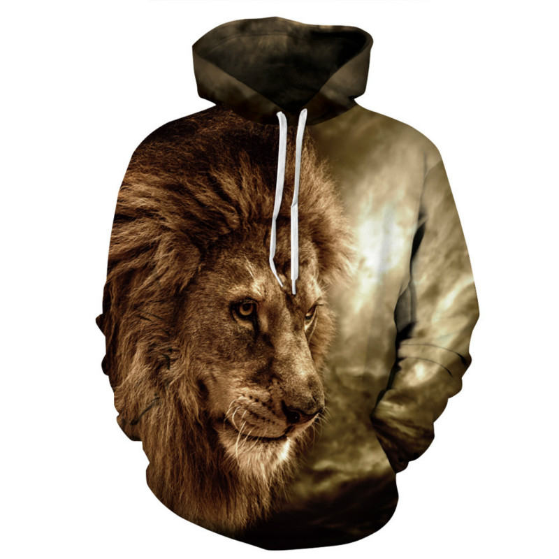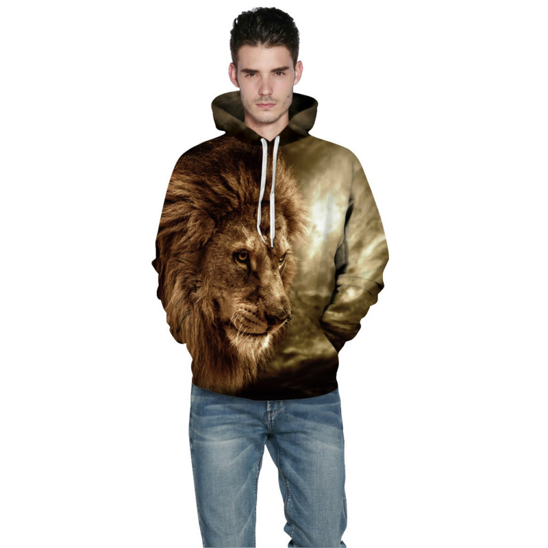 HD Lion Printed Hoodies Casual Long Sleeve Printed Hoodies 6 Sizes