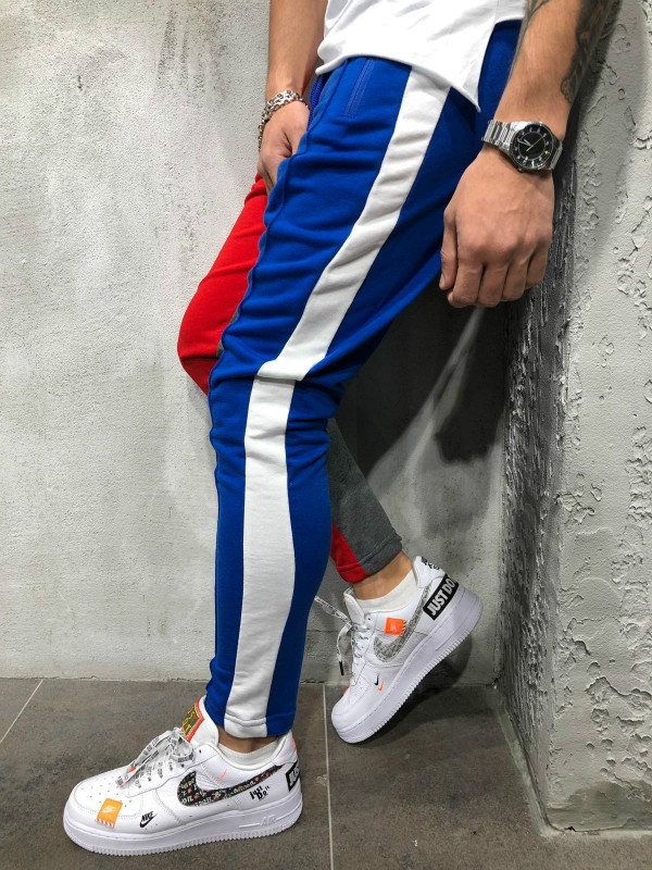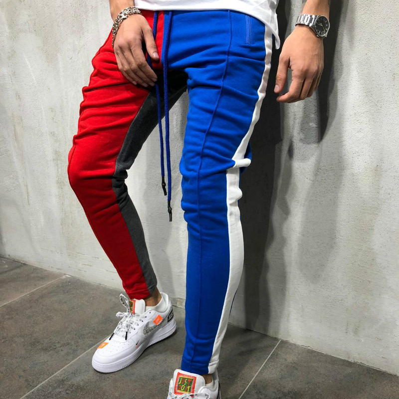 Men's Street Fashion Sports Pants Hip Hop Style Bi-color Slim Casual Pants 4 (#01)