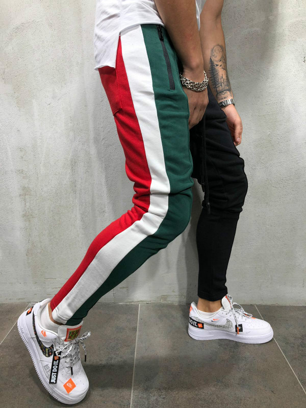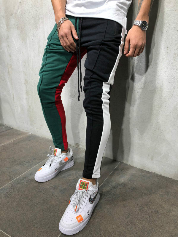 Men's Street Fashion Sports Pants Hip Hop Style Bi-color Slim Casual Pants 4 (#02)