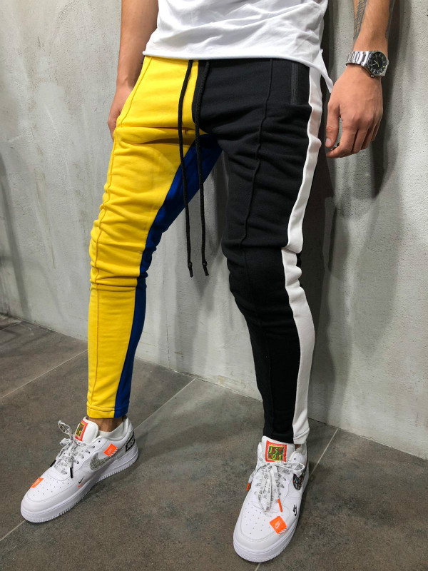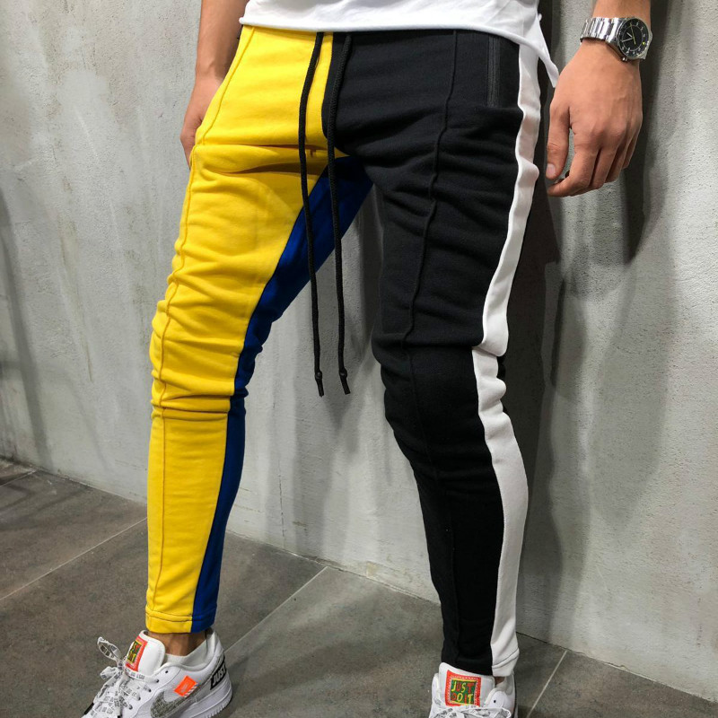 Men's Street Fashion Sports Pants Hip Hop Style Bi-color Slim Casual Pants 4 (#03)