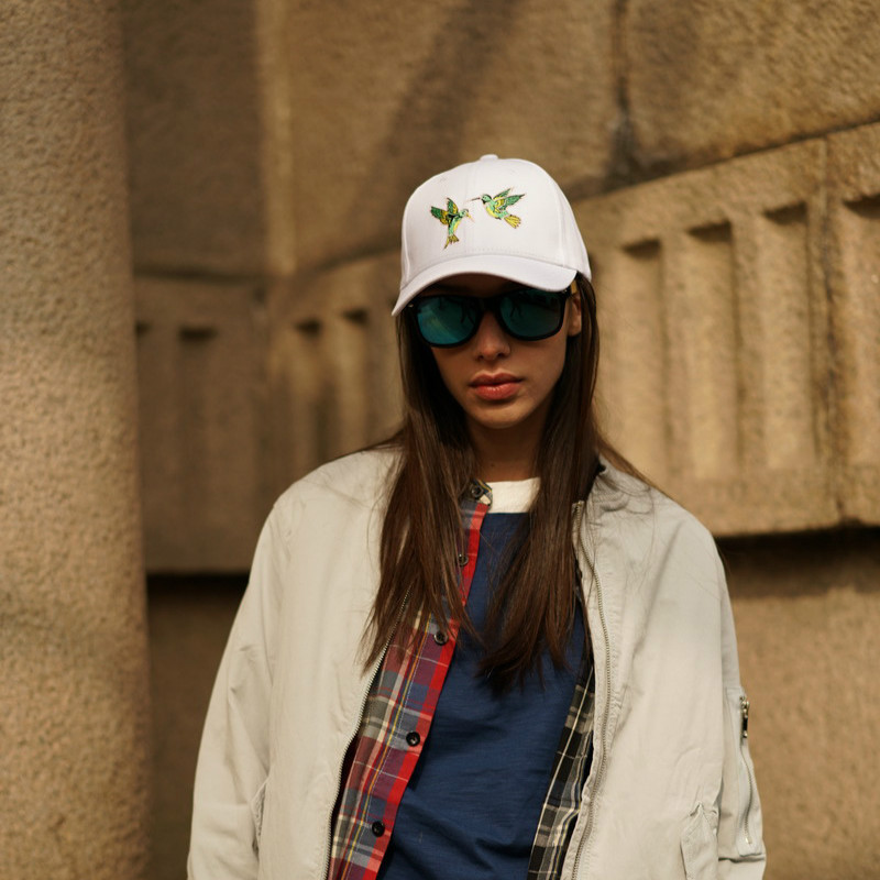 2 Birds Embroidered Baseball Cotton Caps White Hip Hop Caps