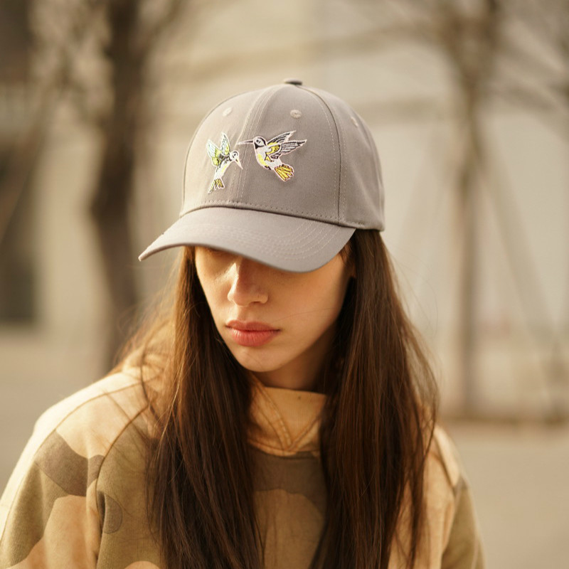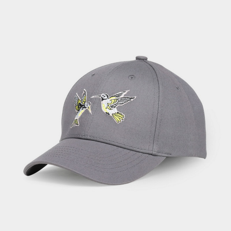 2 Birds Embroidered Baseball Cotton Caps Grey Hip Hop Caps