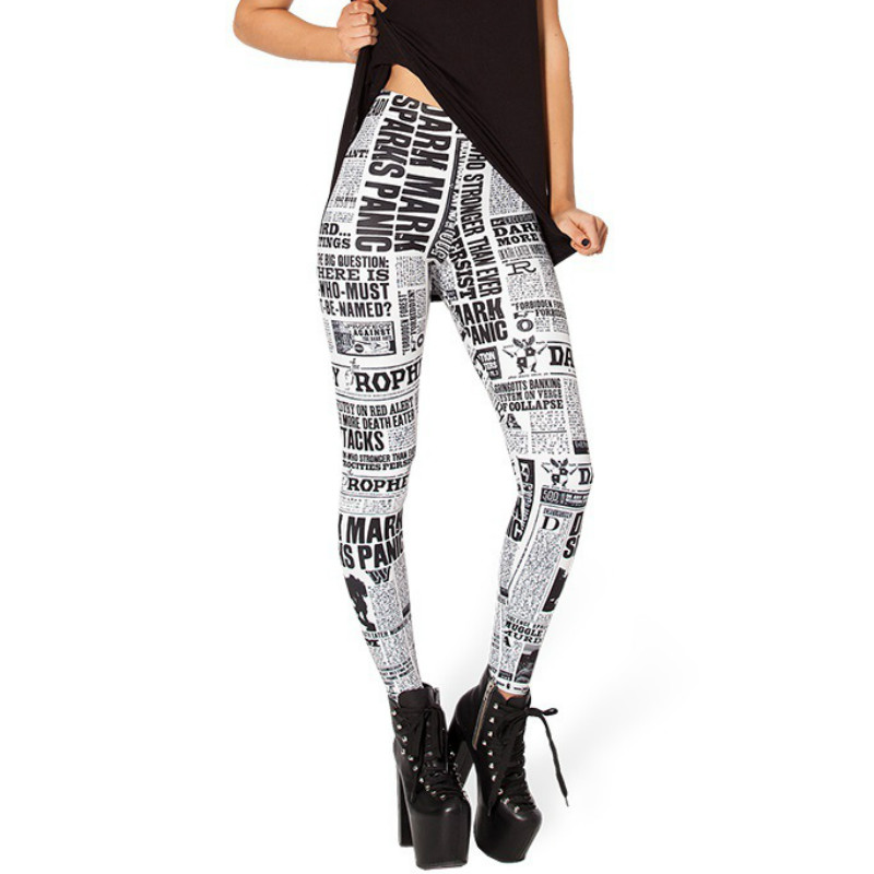 Women's Fashion Digital Printing Leggings Bottom Pants Casual Slim Basic Trousers Sexy Pencil Pants (#028 newspaper)