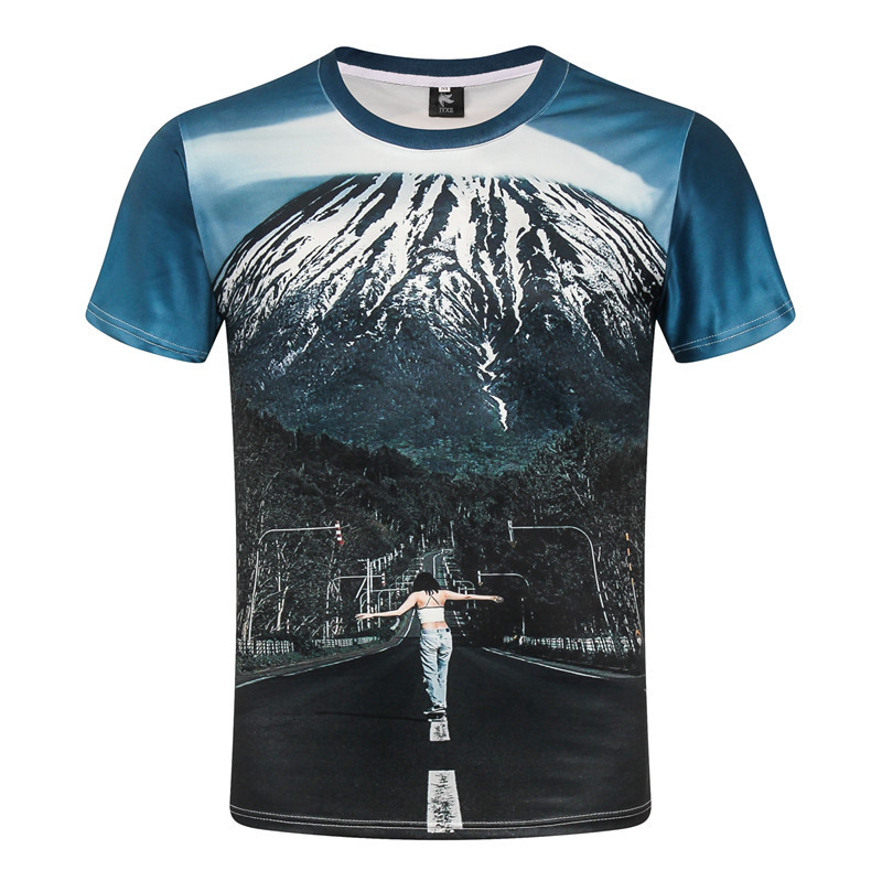 Japanese Mount Fuji Digital Printed T-shirt Lovers Summer Fashion Short Sleeve Slim Casual T-shirts 7 Sizes