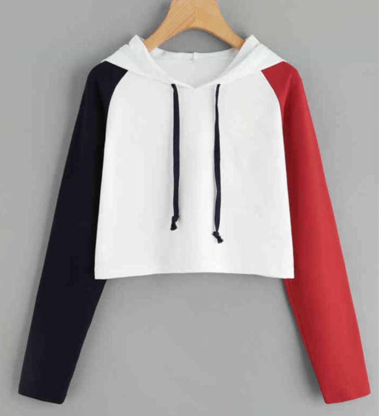 Women's Fashion Long Sleeve Cropped Hoodie T-shirts Multicolored Sweatshirts 5 Sizes (04#)