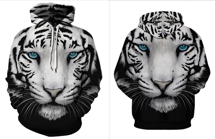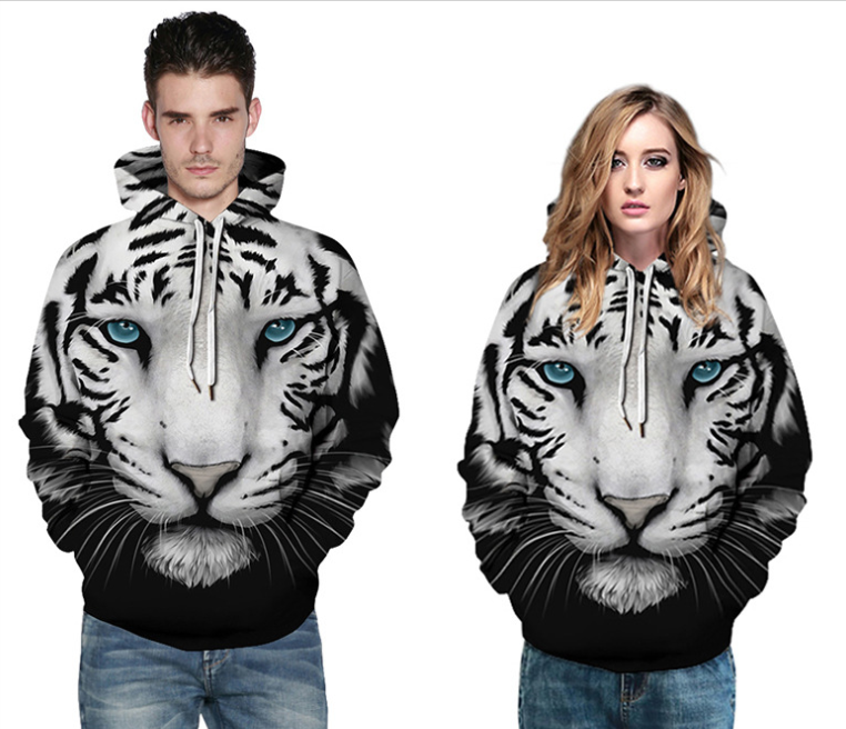 Blue Eyes Tiger Printed Hoodies Casual Long Sleeve Printed Hoodies 6 Sizes