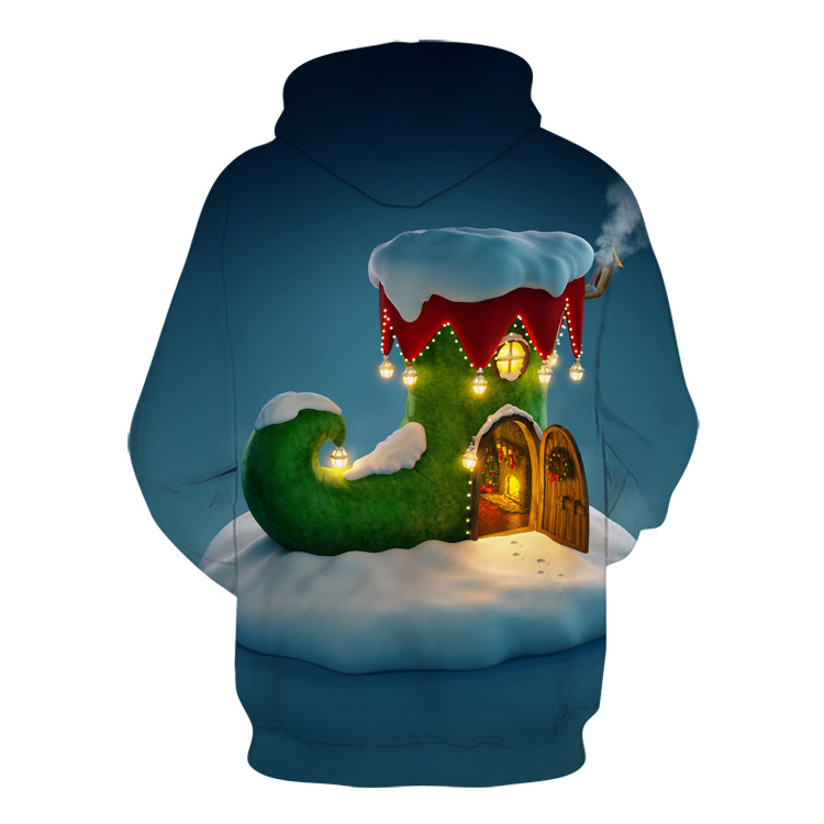 Funny Warm Christmas House Printed Hoodies Casual Long Sleeve Printed Hoodies 6 Sizes