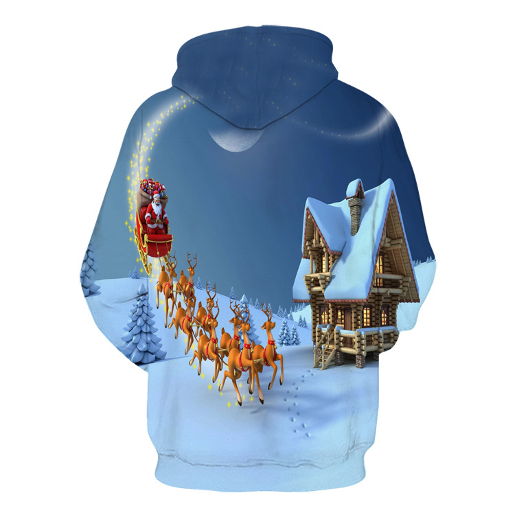 Santa's Sleigh Hoodies Casual Long Sleeve Printed Hoodies 6 Sizes