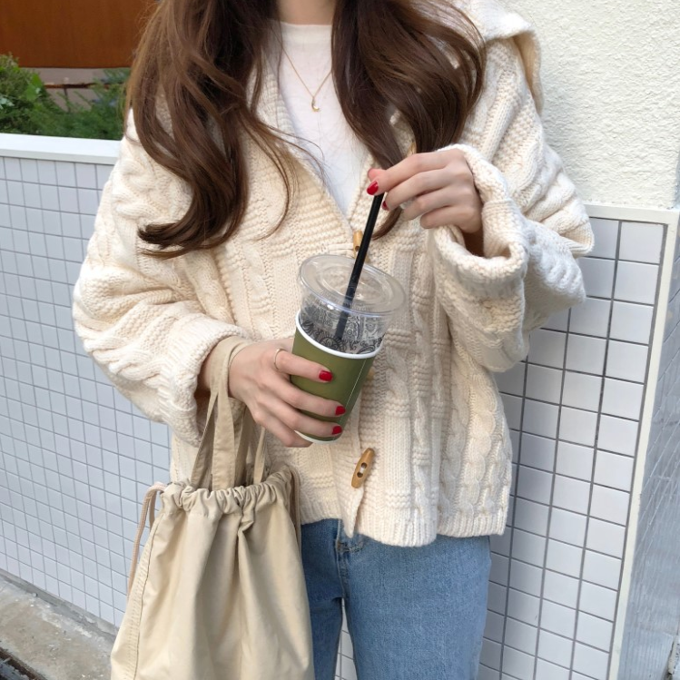 Women's College Style Autumn Winter Wear Loose Lazy Long Sleeve Knit Cardigan Sweater Jackets