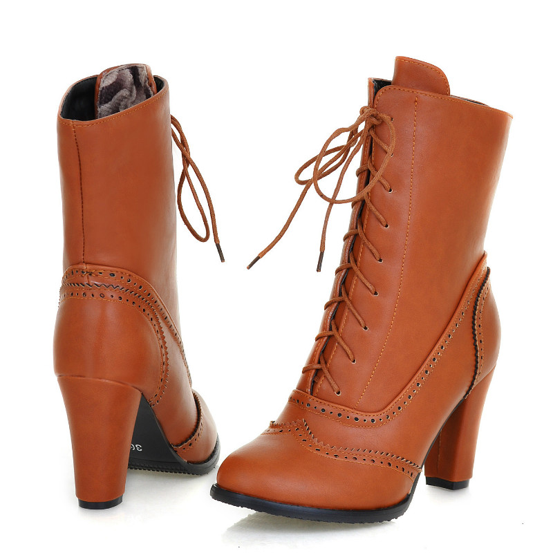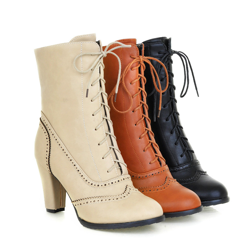 Women's Retro Style High Heels Boots Girls Lace Up Ankle Boots 10 Sizes 3 Colors