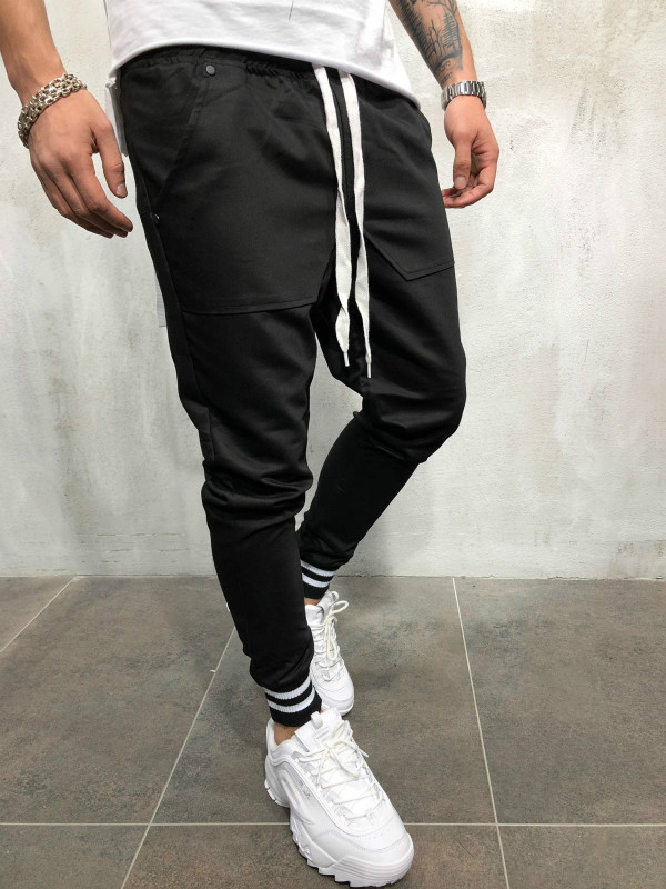 Men's Street Fashion Black Sports Pants Hip Hop Style Casual Pants 5 Sizes (#p012)
