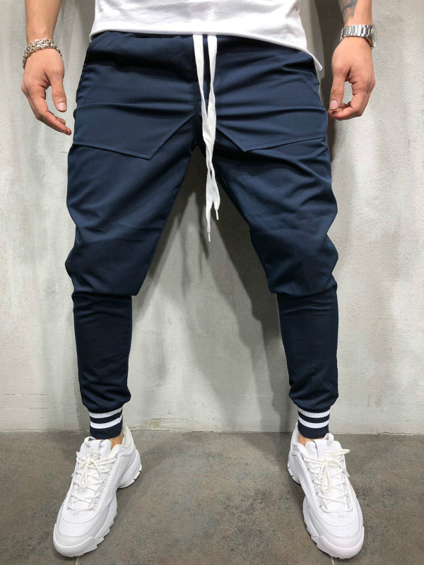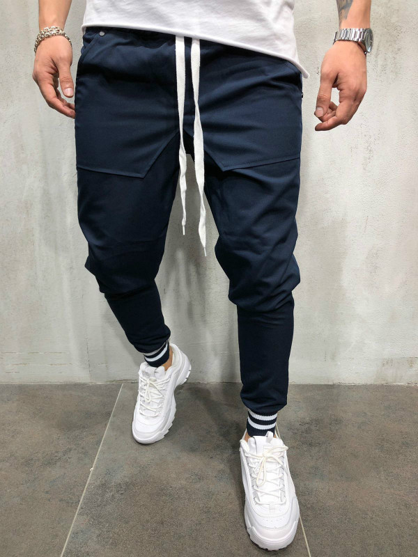 Men's Street Fashion Blue Sports Pants Hip Hop Style Casual Pants 5 Sizes (#p015)