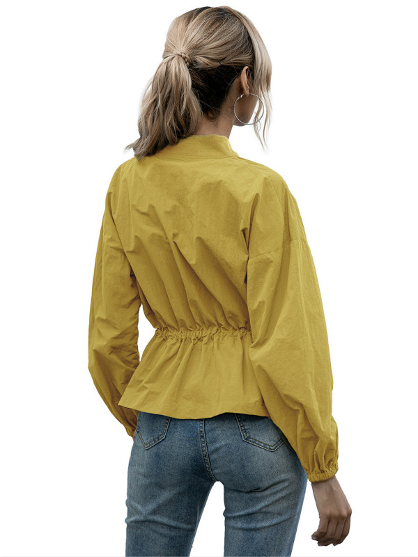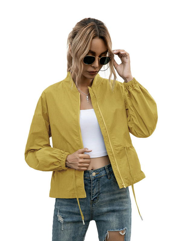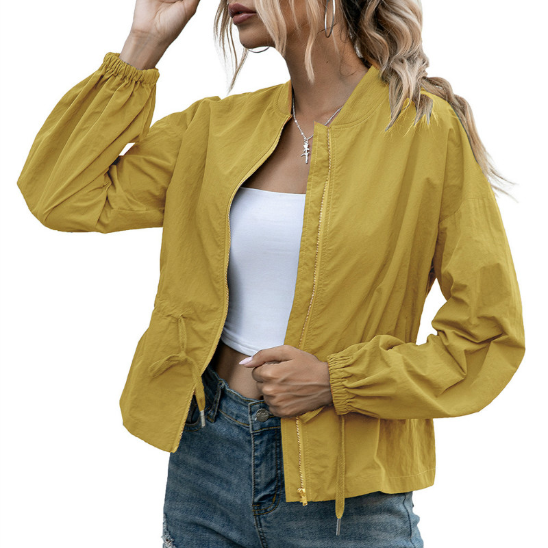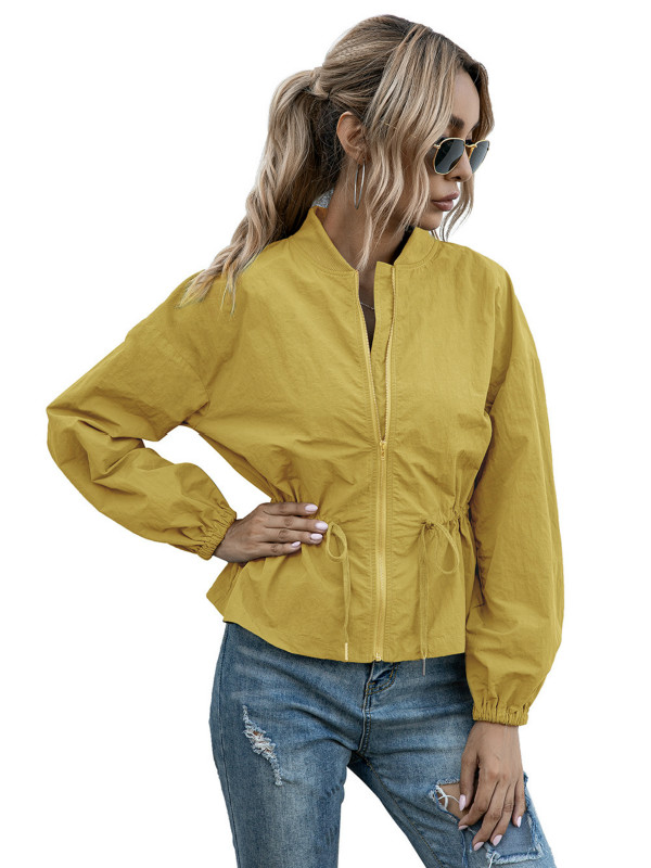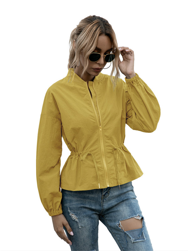 New Self-cultivation Waist Zipper Wind Coats 4 Sizes #yellow