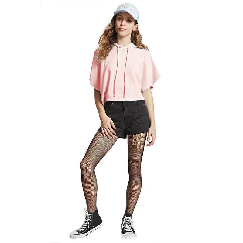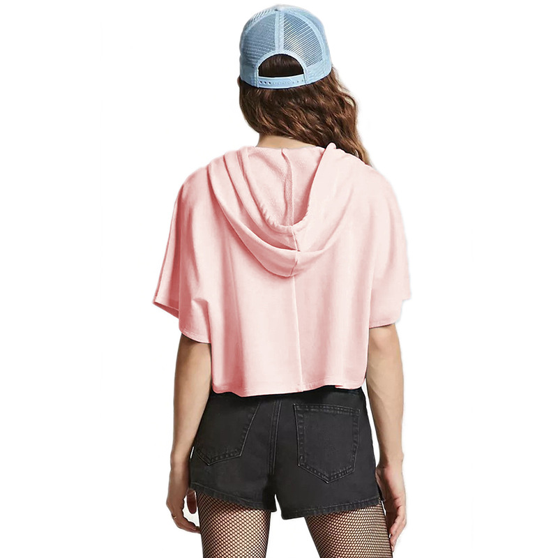 Women's Short Sleeve Cropped Top Pink Hooded T-shirts 4 Sizes