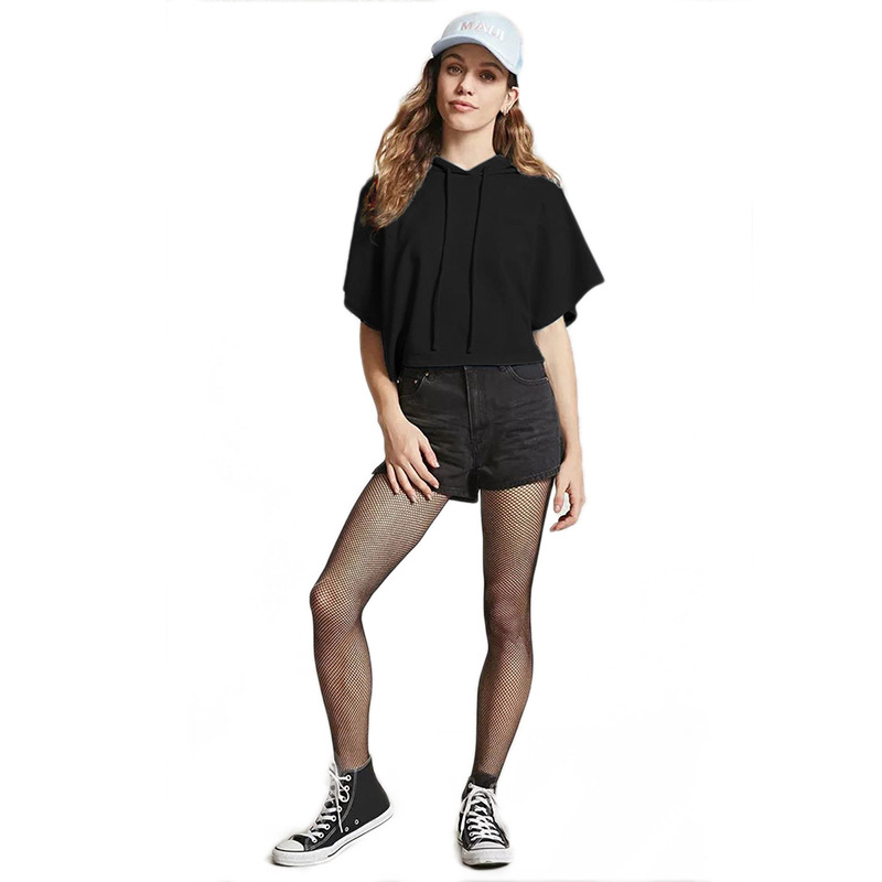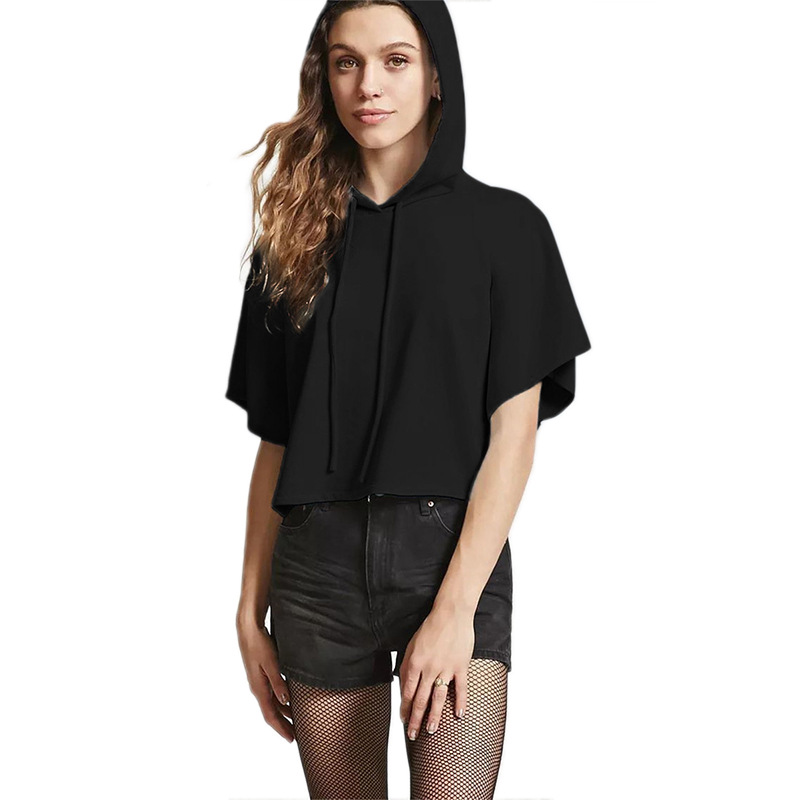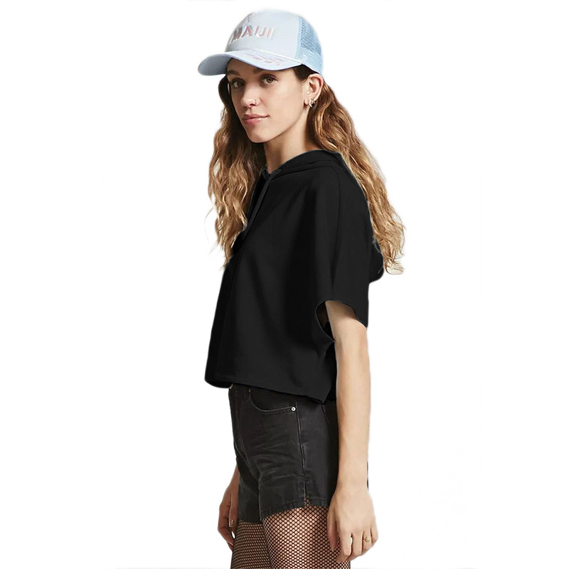 Women's Short Sleeve Cropped Top Black Hooded T-shirts 4 Sizes