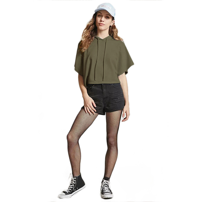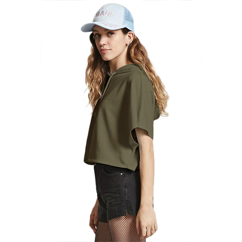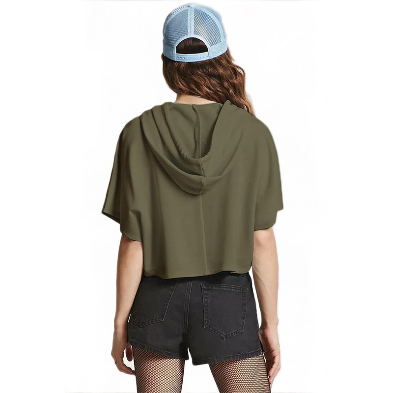 Women's Short Sleeve Cropped Top Army Green Hooded T-shirts 4 Sizes