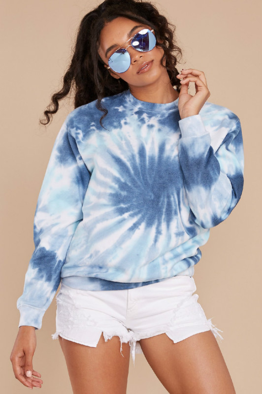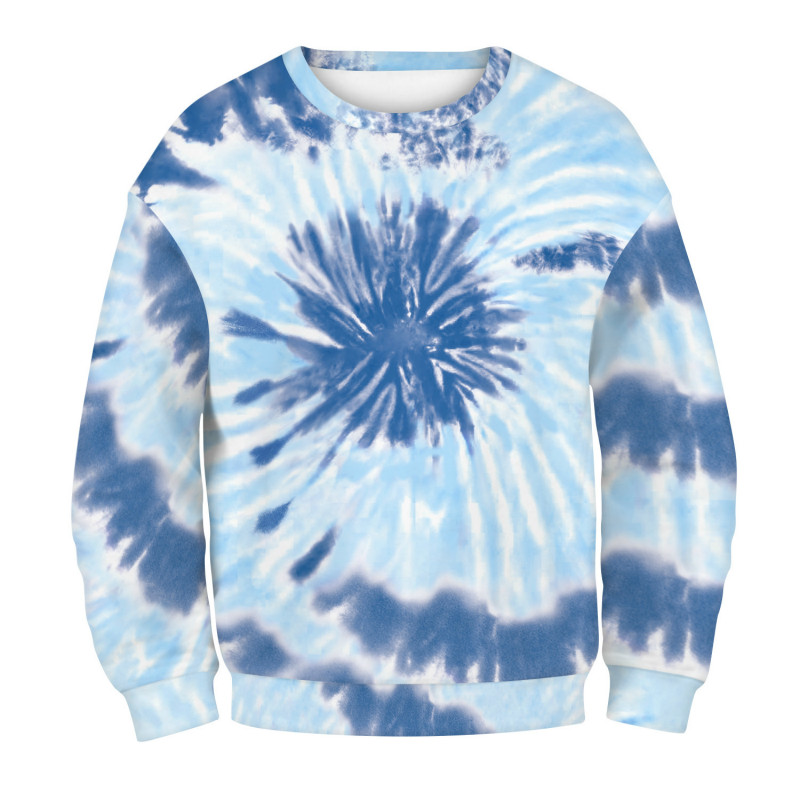 Women's Fashion Tie-dye Printing Loose Round Collared Long-sleeved Sweatshirts 4sizes (#02)