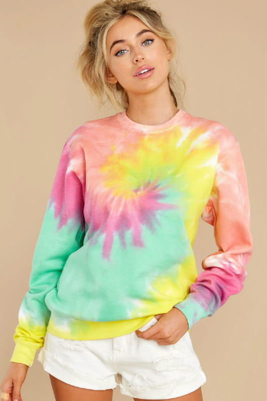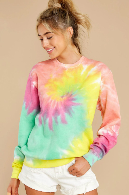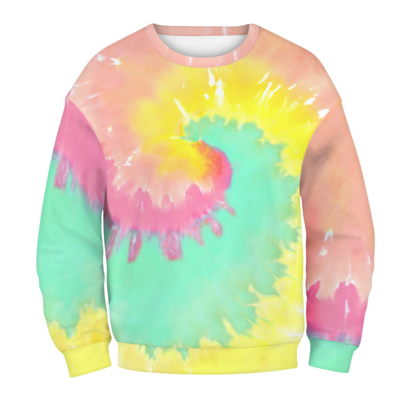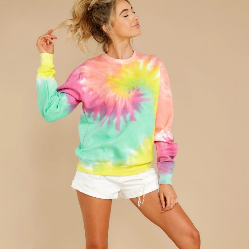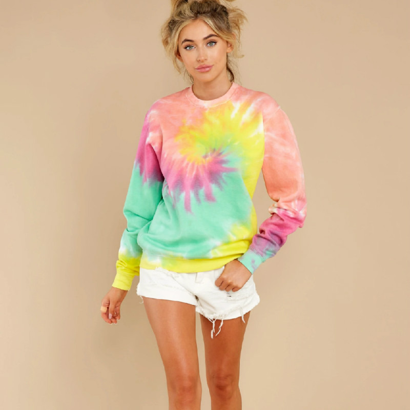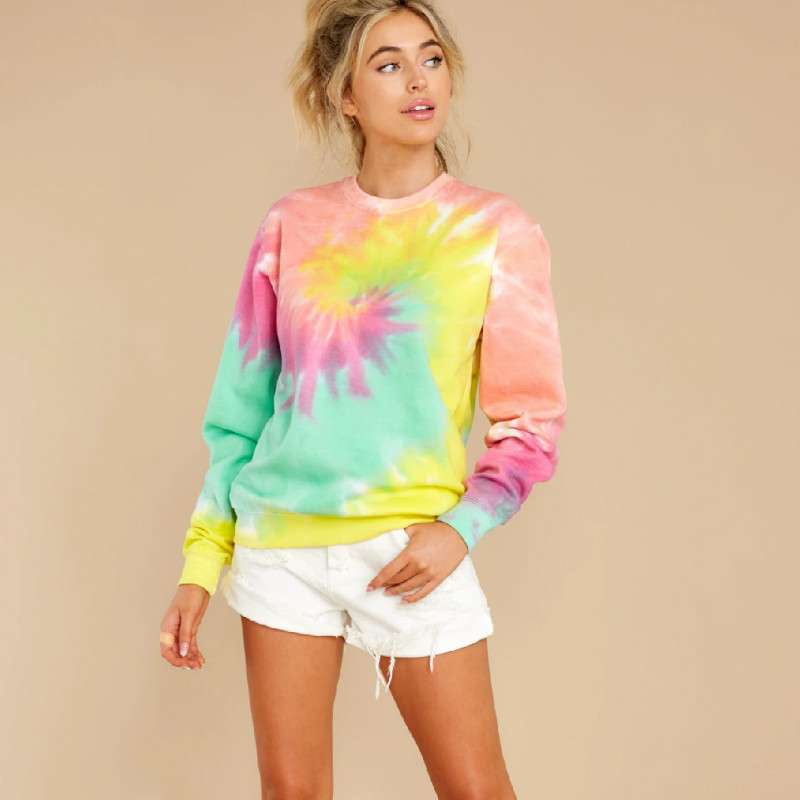 Women's Fashion Tie-dye Printing Loose Round Collared Long-sleeved Sweatshirts 4sizes (#06)