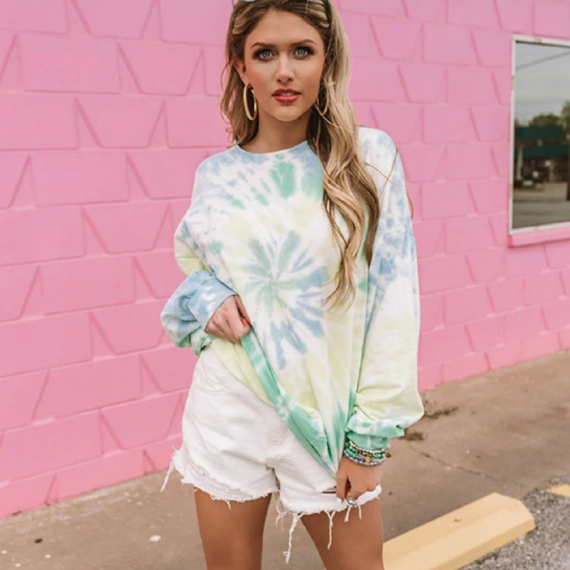 Women's Fashion Tie-dye Printing Loose Round Collared Long-sleeved Sweatshirts 4sizes (#07)