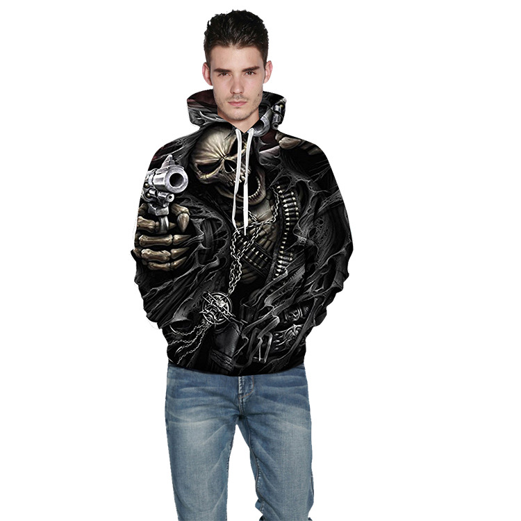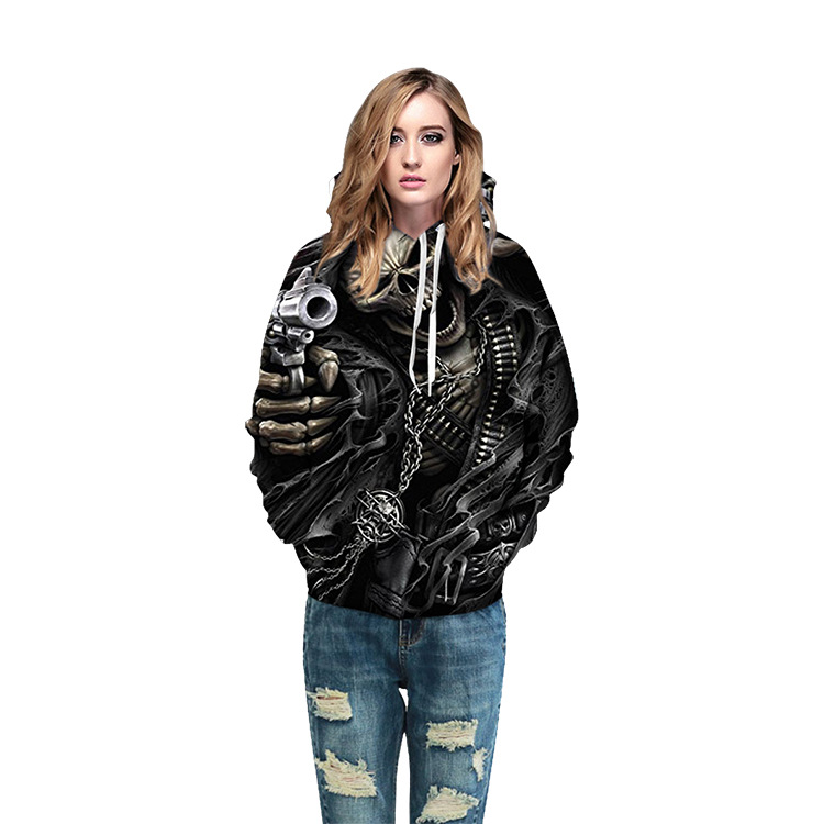 Dark Skull Killer Printed Hoodies Casual Long Sleeve Printed Hoodies