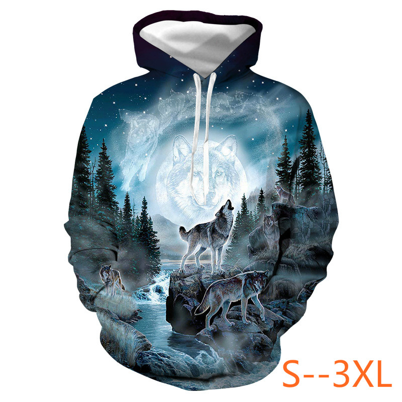 Snow Wolf Lake Printed Hoodies Casual Long Sleeve Printed Hoodies