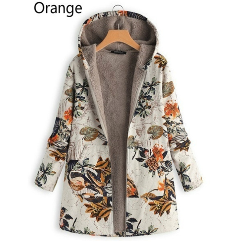 Women's Retro Style Flowers Printed Hooded Coats Winter Spring Warm Zipper Jackets (With plus sizes)
