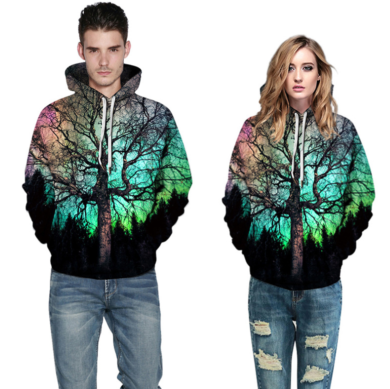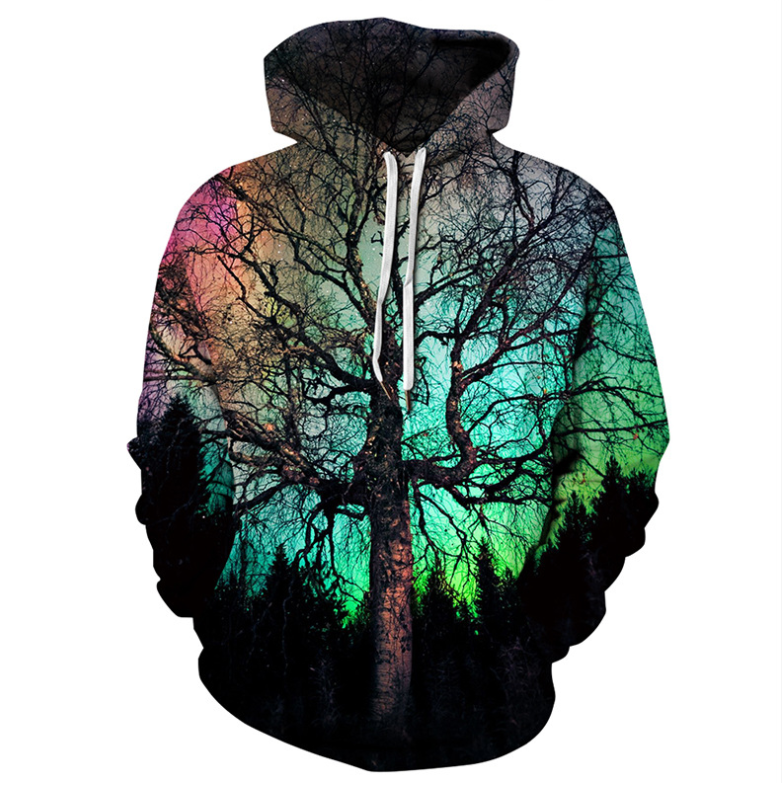 Colorful Tree Printed Hoodies Casual Long Sleeve Printed Hoodies 6 Sizes