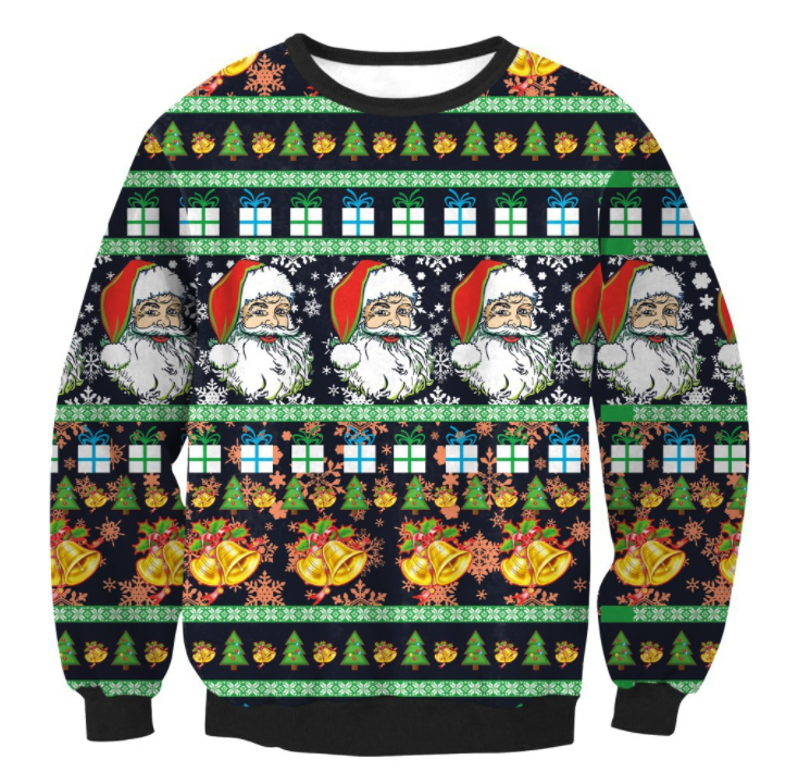 Christmas Printing Sweatshirt Round Neck Long Sleeve Sweater 4 Sizes