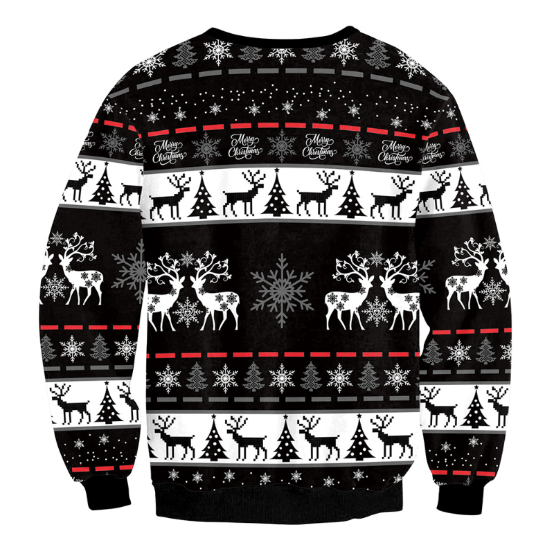 Christmas Printing Sweatshirt Classic Round Neck Long Sleeve Sweater 4 Sizes