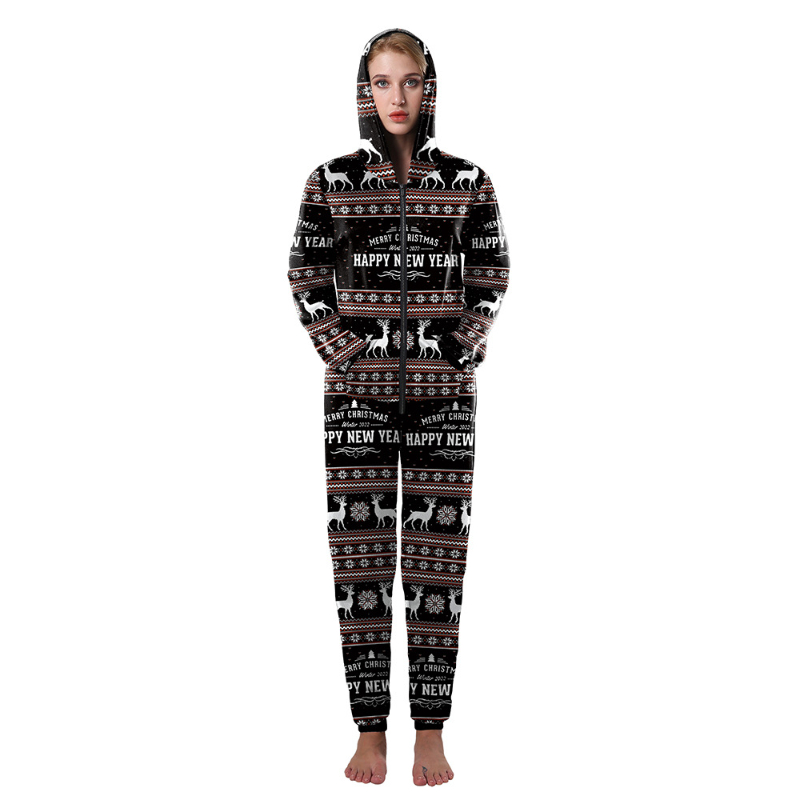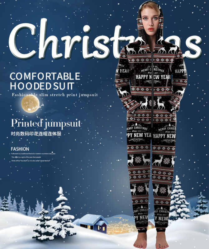 Christmas Hooded Zipper Comfortable Jumpsuit (#04)