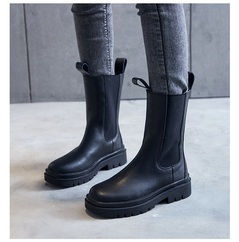 Leather Martin Boots Elastic Band Design Women's Fashion Martin Boots
