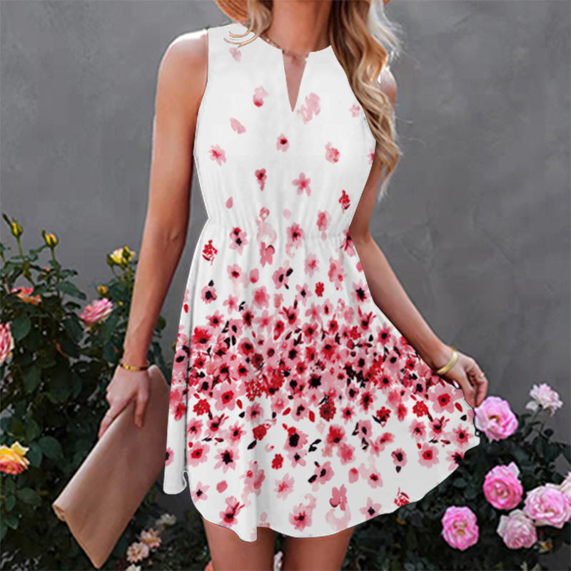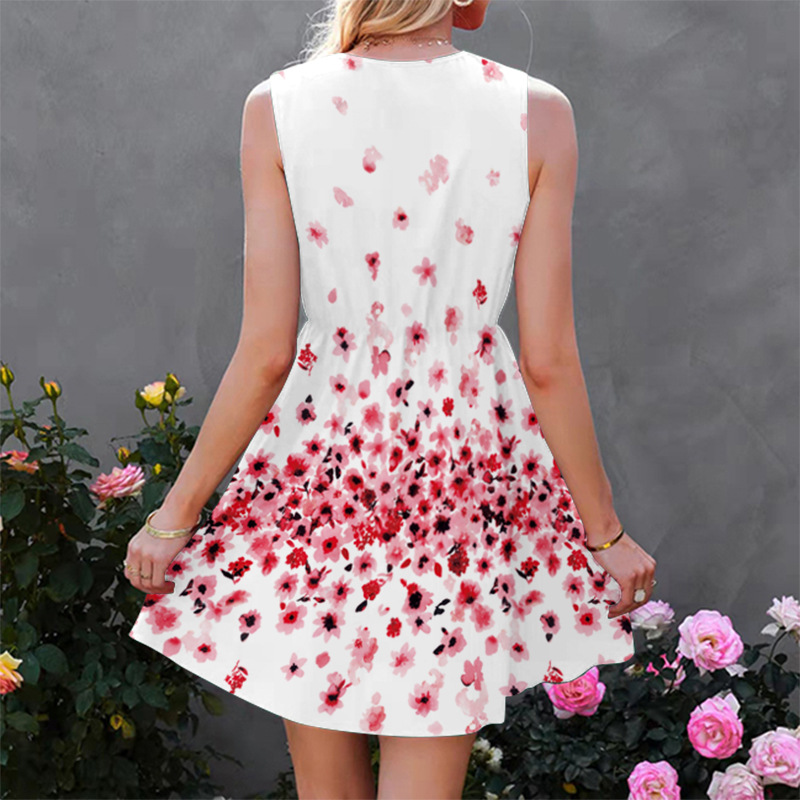 Flowers Printed Skirts Sweet Sleeveless Dress 5 Sizes