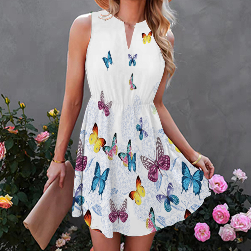Cute Butterflies Printed Skirts Sweet Sleeveless Dress 5 Sizes