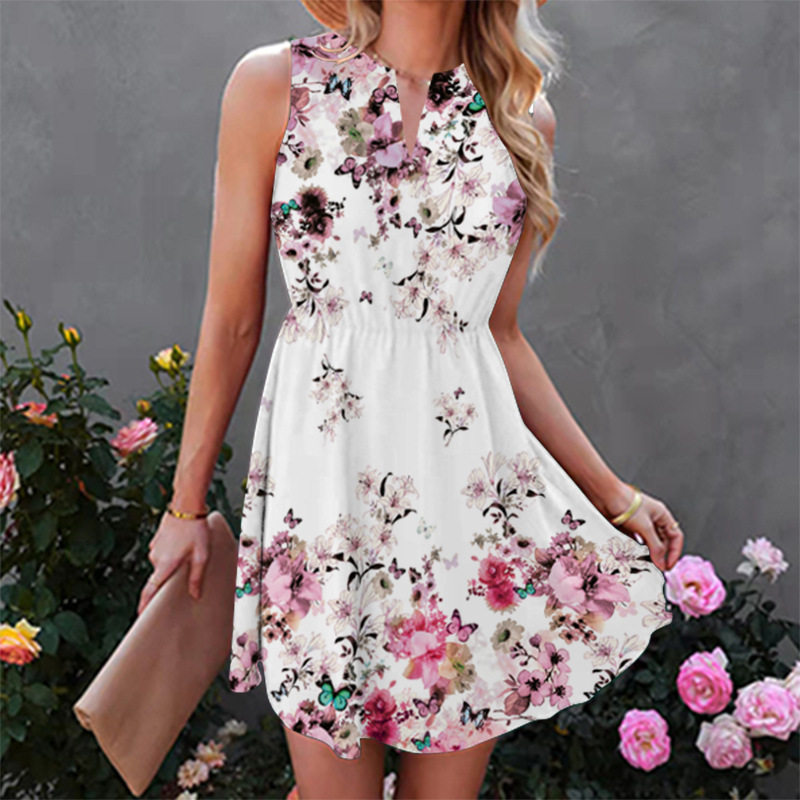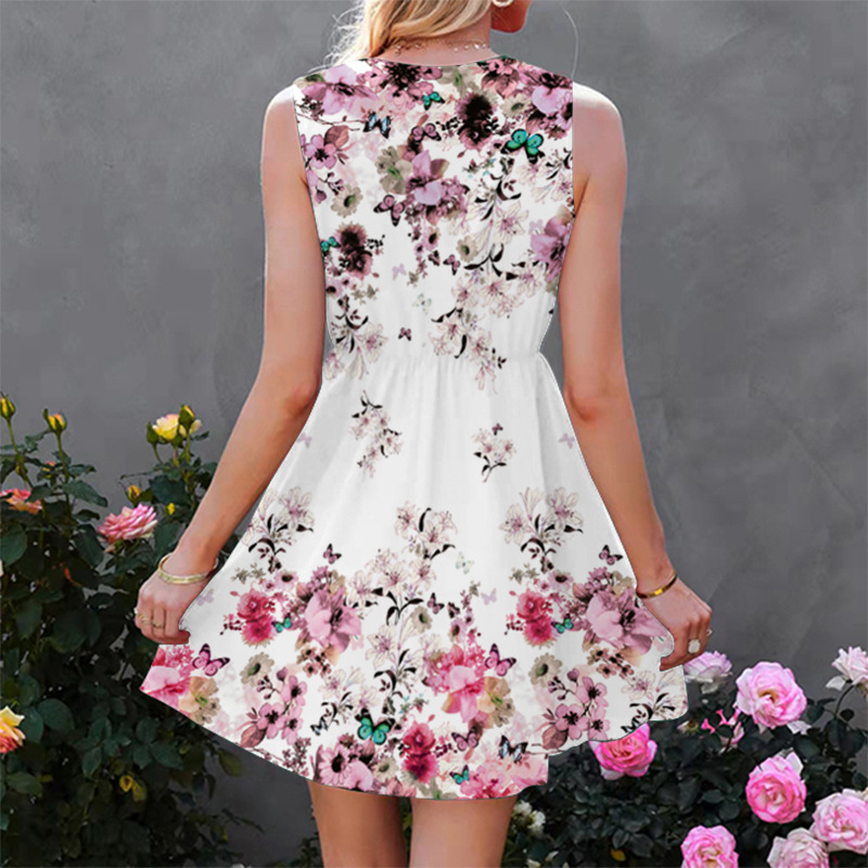 Colorful Flowers Printed Skirts Sweet Sleeveless Dress 5 Sizes